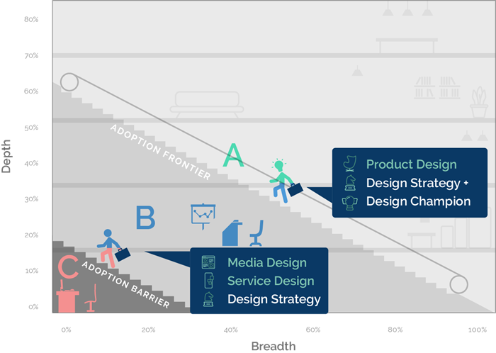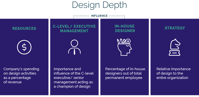 To further define design depth, we identified what it meant to have design champions internally and whether they have the power to shape strategy and resources.