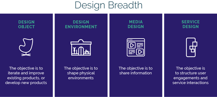 To further define design breath we identified the entire process from ideation to the user-experience, how widely is design applied throughout the process and at what levels. These activities, typically, vary across the sector but are consistent across organisations within the sectors.