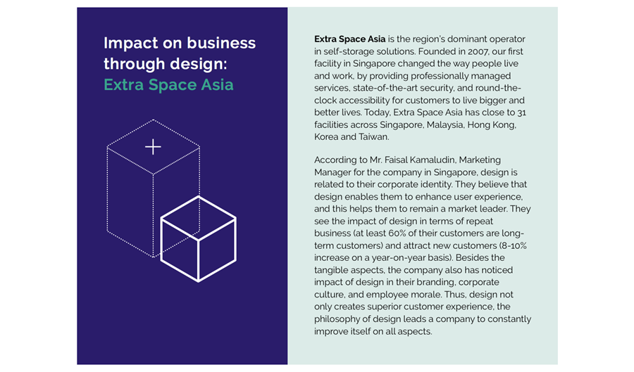 In a longitudinal study commissioned by the DesignSingapore Council (Dsg), we discovered that companies which have continued to adopt design over time have seen better returns (in terms of profits) as compared to firms which remained stagnant or reduced their design adoption.