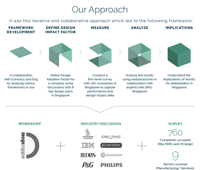The framework to measure design adoption was developed in consultation with DesignSingapore Council, experts at Consulus, Frost & Sullivan, SMU and economists at Ministry of Trade & Industry (MTI), Singapore.