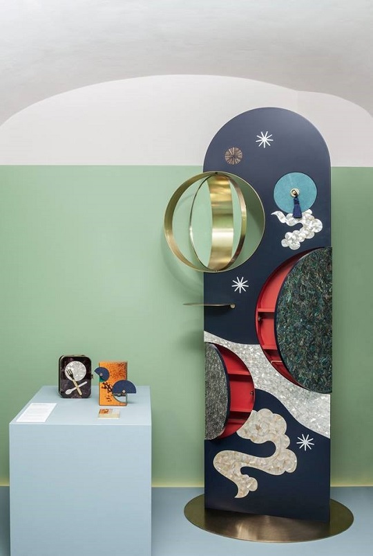 Olivia Lee too enjoyed her journey. The industrial designer flew to Cebu, Philippines, to work with Nature Squared, producers of exquisite luxury finishes made from natural materials to realise her design. Intriguingly titled “The Secret to Longevity”, hers is a collection of wellness accessories all made from natural materials such as pufferfish skin and shagreen.