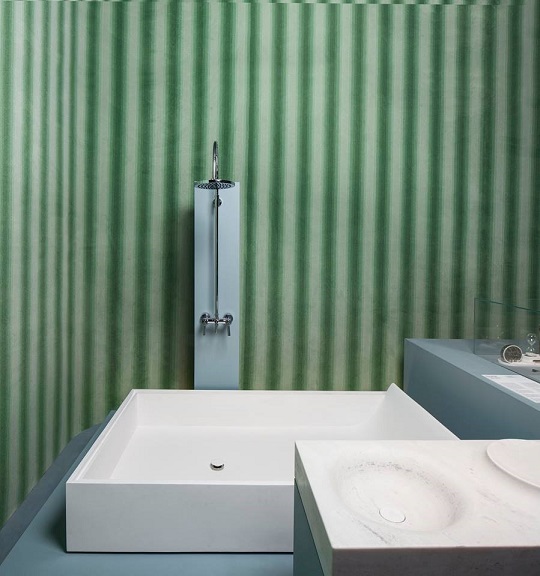 This shower bath, made from a stone composite developed by apaiser, has a distinct design with its strong simple geometry – I like to think of it as poetic yet practical” said Wong Mun Summ, founder of WOHAbeing.