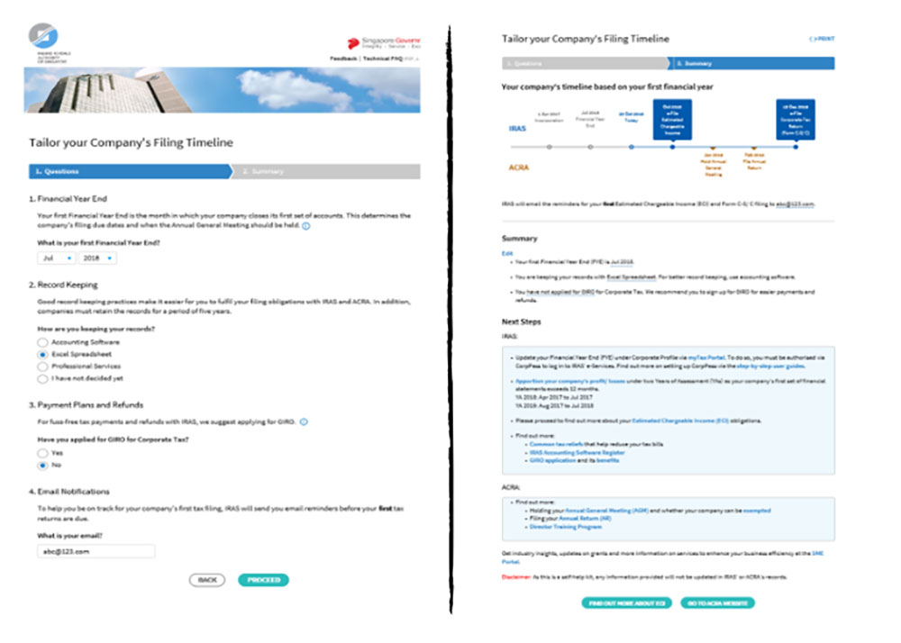 The next phase aims to include information on subsequent interactions and tax filings with IRAS, as well as filing requirements by ACRA. There will also be a link to Enterprise Singapore’s website so that the new companies can seek industry insights, get updates on available grants, and obtain information on services to enhance business efficiency.