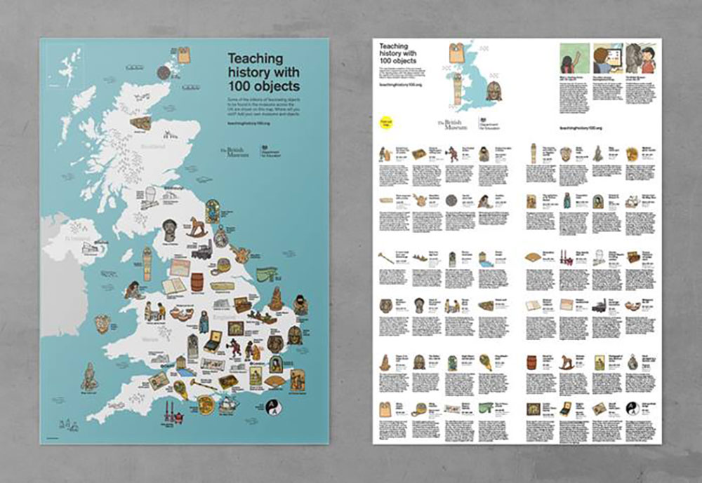 Darel’s first project out of graduation was an informatics brochure commissioned by The British Museum. It was during his time studying in Central Saint Martins with the Dsg Scholarship that Darel first discovered his love for museums. The sheer scale of the exhibits fascinated him, alongside the diversity of artefacts, that were once objects he only saw through television screens. Of course, he was also drawn as a college student on a stipend to its free entry policy. Entitled Teaching History With 100 Objects, Darel designed and illustrated an infographic brochure accompanying the popular BBC Radio 4 Series, A History of the World in 100 Objects. It was an inspiring and fulfilling project for Darel, working with his favourite institution in London, and appreciating how his work was also distributed to classrooms around the UK as an educational resource.