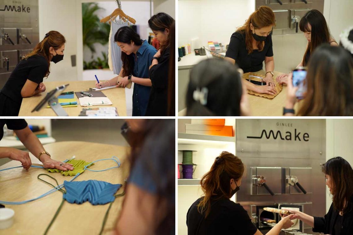They developed the idea for their MAKE In Shop initiative during The Bridge Fashion Incubator programme run by the Singapore Fashion Council (then the Textile and Fashion Federation) in 2019. They explored the concept further in 2020 with the DesignSingapore Council’s (Dsg’s) Frame and Scope programme, which has since been discontinued. “There were good takeaways,” says Lee. She continues, “It helped us to close some key gaps and also gave us some frameworks that we still use today – for example, how to make the brand values coherent through all our touchpoints.”
