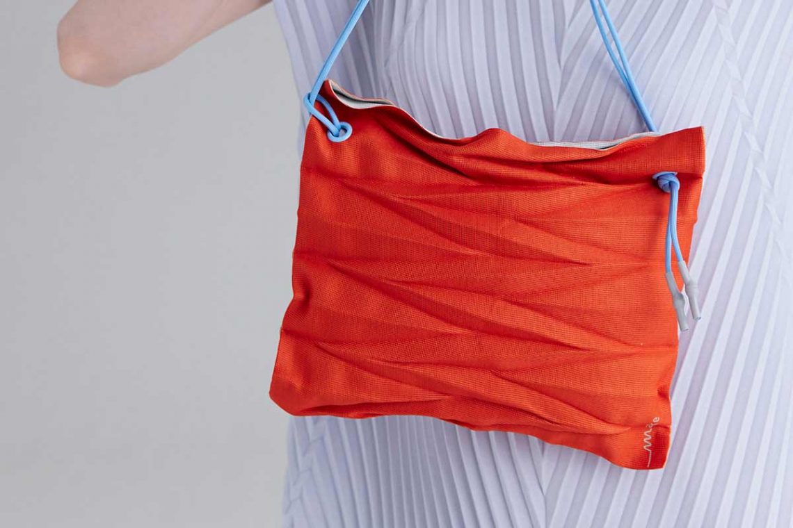 The MAKE In Shop concept takes advantage of the potential of pleating to control the design of simple small items such as bags, scarves, and t-shirts, thereby reducing the number of base units that need to be kept in stock. The idea is to engage customers in the process of pleating items inside the store. The customer selects the pleating design, is assisted with preparing the pre-stitched base textile unit for steaming in a readymade mould, and then finishes the pleated item with accessories such as straps in a colour of their choosing.
