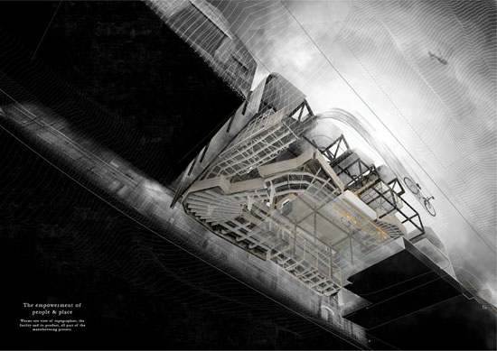 My final-year university project “Manufacturing of/for Urban Idiosyncrasies” (see below). It is a speculation of a 3-D printing facility for cyclists in Sheffield, United Kingdom. The proposal recognises our inherent behaviours and identities in the city, and that the idiosyncratic characteristics of person and place can be empowered in a global, digital world.
