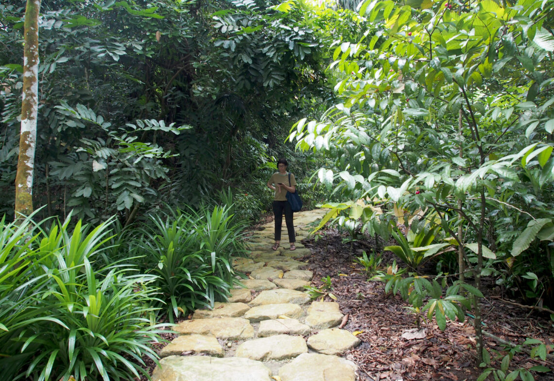 The collective—Lim Shu Min, Laura Miotto and Ramesh Krishnan— have long been interested in how mobile phones and geolocation technologies can offer new possibilities in their work designing exhibitions for museums and galleries. In 2021, they finally got the opportunity to experiment when Shu Min received support from the Good Design Research initiative. Together, they designed an audio walking tour for the Gallop Extension at the Singapore Botanic Gardens.