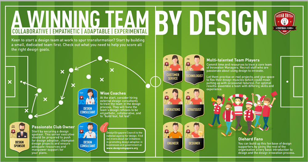 Leaders who are prepared to advocate for design, champion projects and dedicate resources to it. Using the football analogy, these are the “club sponsors”