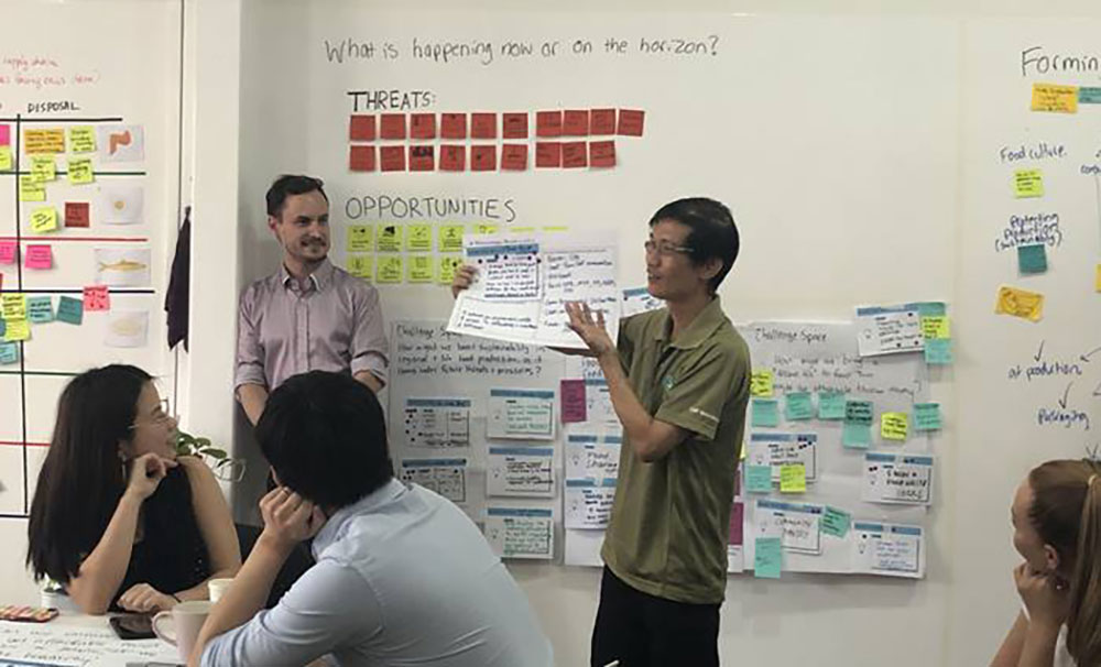 Wong Sher Maine joins in a design thinking workshop to tackle challenges that threaten the future of food in Singapore.